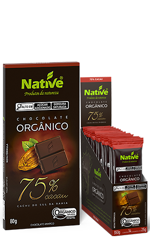 O Chocolate Orgânico Native 75% Cacau, com cacau orgânico do sul da Bahia, é o chocolate que os nossos sentidos reconhecem e desperta nossa percepção do que é o verdadeiro cacau. Com um toque de cereja e ligeiramente cítrico, suas nuances perduram por deliciosos minutos na boca. O segredo do seu rico sabor e aroma está na seleção das melhores amêndoas de cacau orgânico, na qualidade do nosso açúcar orgânico e no cuidado na fabricação. Tudo isso para garantir as mais ricas nuances que caracterizam o sabor de um chocolate Premium, reconhecido pelos consumidores mais exigentes do mundo.